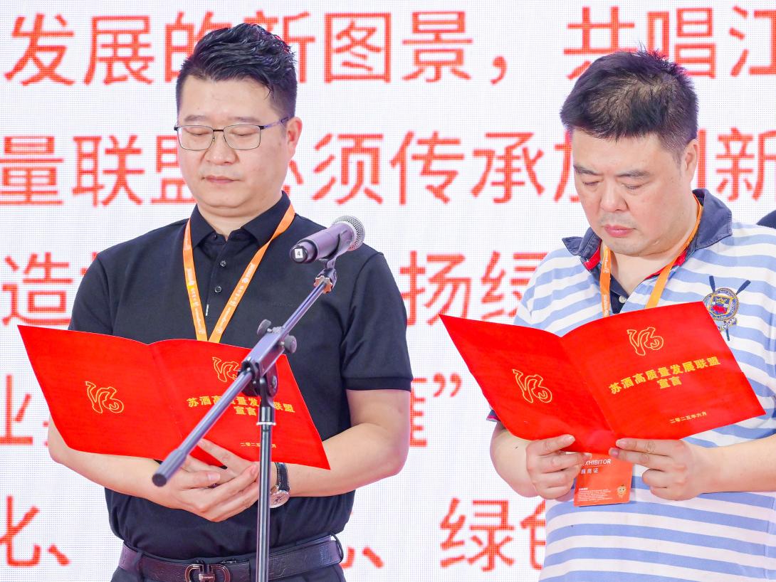 展會開幕式現(xiàn)場,五醍漿副總經(jīng)理趙大慶代表企業(yè),與江蘇白酒高質(zhì)量發(fā)展聯(lián)盟成員共同莊嚴宣讀了“江蘇白酒高質(zhì)量發(fā)展聯(lián)盟宣言”,充分發(fā)揮老名酒品牌的責任感與使命感,將江蘇白酒振興的時代強音從南京糖酒會傳遞到全國。在隨后舉辦的中國酒業(yè)高質(zhì)量發(fā)展論壇·江蘇大會上,趙大慶還以五醍漿酒業(yè)經(jīng)營經(jīng)驗為例,向行業(yè)同仁分享了在當前行業(yè)形勢和趨勢下,區(qū)域酒企如何更好把握資源和渠道,實現(xiàn)突破發(fā)展。