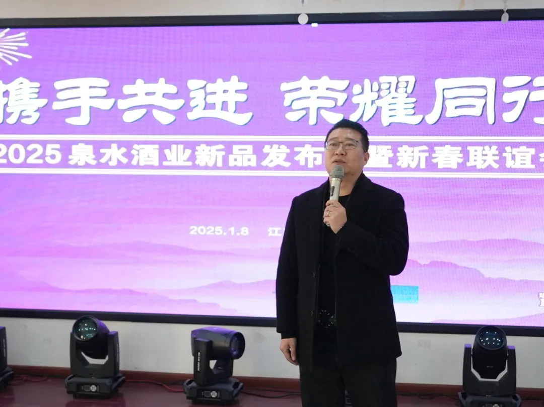 新春將至,2025年1月8日,“攜手共進·榮耀同行”——2025泉水商貿(mào)五醍漿超長發(fā)酵新品發(fā)布會暨新春聯(lián)誼會(響水站)在金山大酒店隆重舉行,五醍漿酒業(yè)執(zhí)行副總經(jīng)理趙大慶、五醍漿酒業(yè)銷售公司大區(qū)總監(jiān)馬華聰、泉水商貿(mào)總經(jīng)理吳春泉等出席此次活動,與眾多合作伙伴齊聚一堂,共迎新春到來,共品五醍漿之醇。