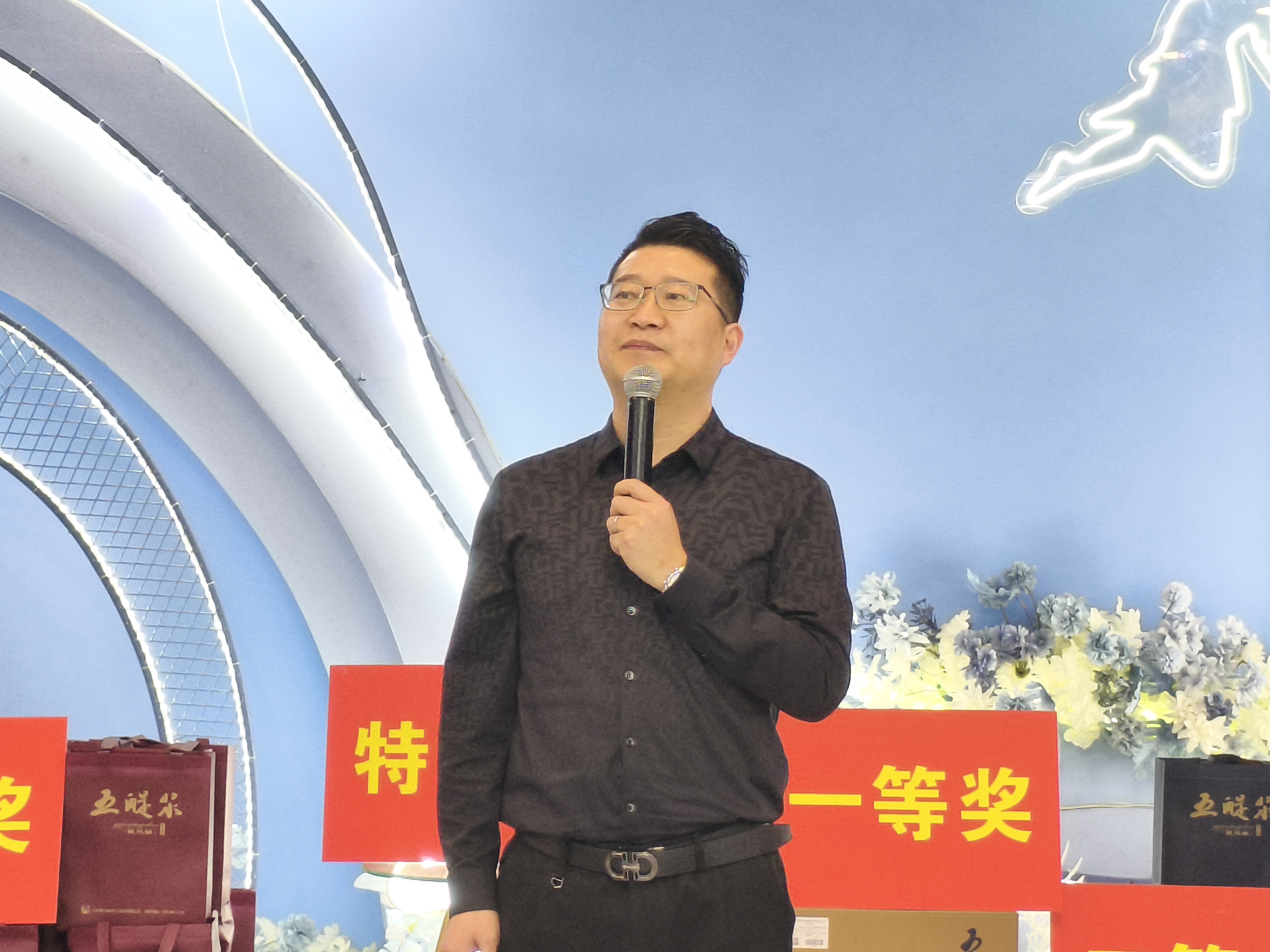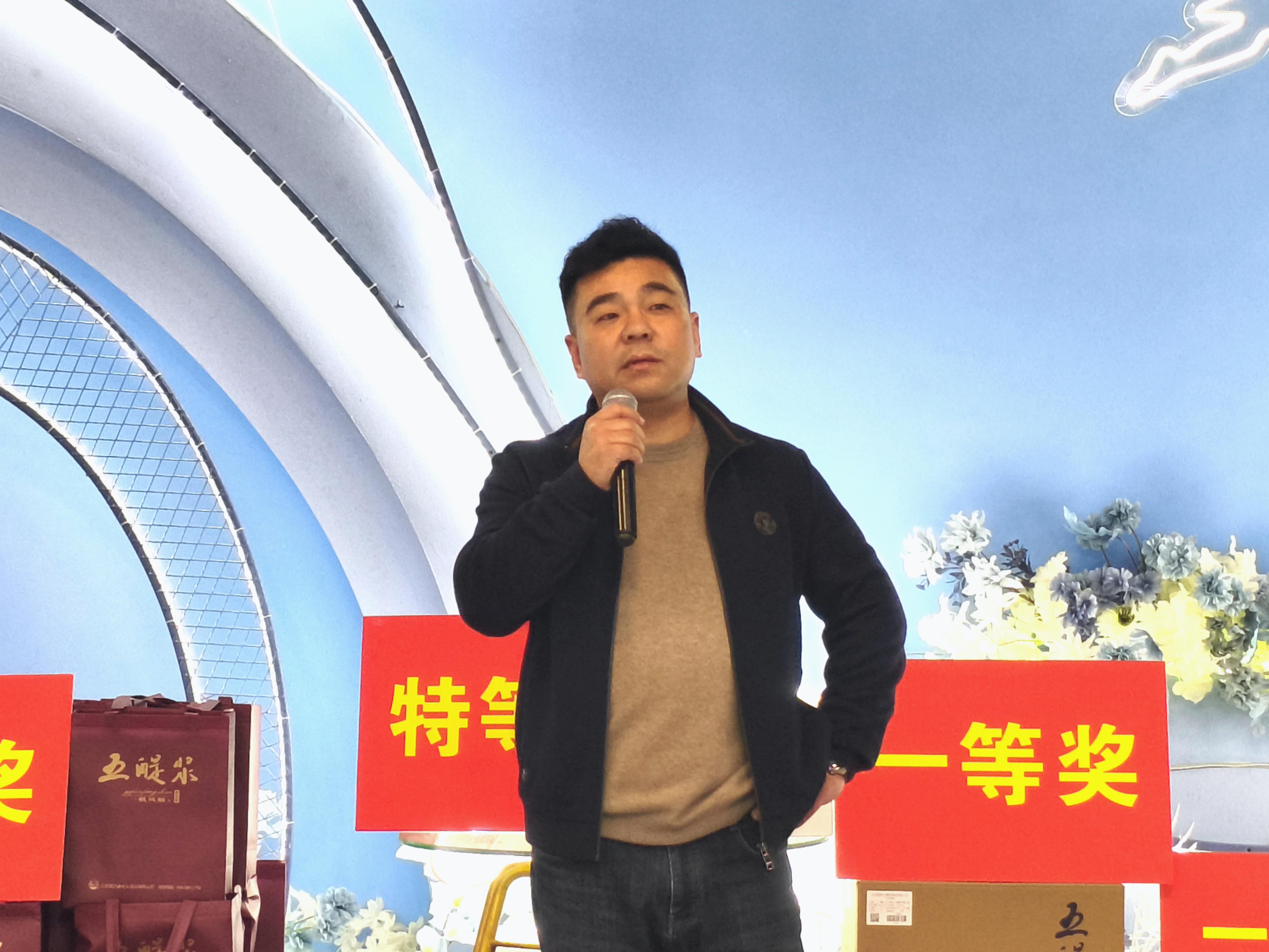 晚宴在溫馨的氛圍中緩緩拉開序幕,五醍漿酒業(yè)執(zhí)行副總經(jīng)理趙大慶以滿腔熱忱向在座的每一位嘉賓致以誠摯的問候與歡迎。他表示,“一帆風(fēng)順尊享”,這不僅僅是一款酒的名稱,更承載著我們與每一位尊貴家人共享榮耀與喜悅的美好期許。五醍漿的每一步成長,都離不開鹽城人民的支持與深情厚愛,這份力量是我們不斷前行的堅實后盾。此外,趙總對軍哥商貿(mào)長期以來與五醍漿攜手同行表達了深切的感激之情。在此美好的夜晚,趙總衷心期盼在座的每一位來賓在盡情品鑒五醍漿醇香美酒的同時,更能收獲滿滿的幸運與喜悅,愿大家的生活如這佳釀一般,一帆風(fēng)順,美好常伴。