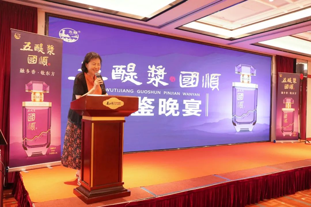 江蘇省酒類行業(yè)協(xié)會常務副會長兼秘書長王建英發(fā)表了晚宴致辭,闡述了江蘇酒協(xié)“致力于幫扶江蘇酒企發(fā)展”的使命,表達了對各地酒協(xié)配合與支持省酒協(xié)工作的感謝。并向在座嘉賓介紹了五醍漿品牌,她表示:五醍漿作為江蘇五大名酒之一,作為具有近三百年歷史的老品牌,近兩年的高速增長已顯示出“老名酒復興”的活力。省酒協(xié)和各地酒協(xié)將不遺余力地對像五醍漿這樣優(yōu)質和潛力企業(yè)的支持和幫扶,共同振興江蘇酒類行業(yè)。最后,王會長在致酒辭中向大家隆重推介了五醍漿國順產品。傳承為基,創(chuàng)新為魂,在座嘉賓們共品融香美酒,一方面感受傳承百年的釀造工藝和文化底蘊,一方面品味“融香型”創(chuàng)新酒體“一品多香”的神韻。